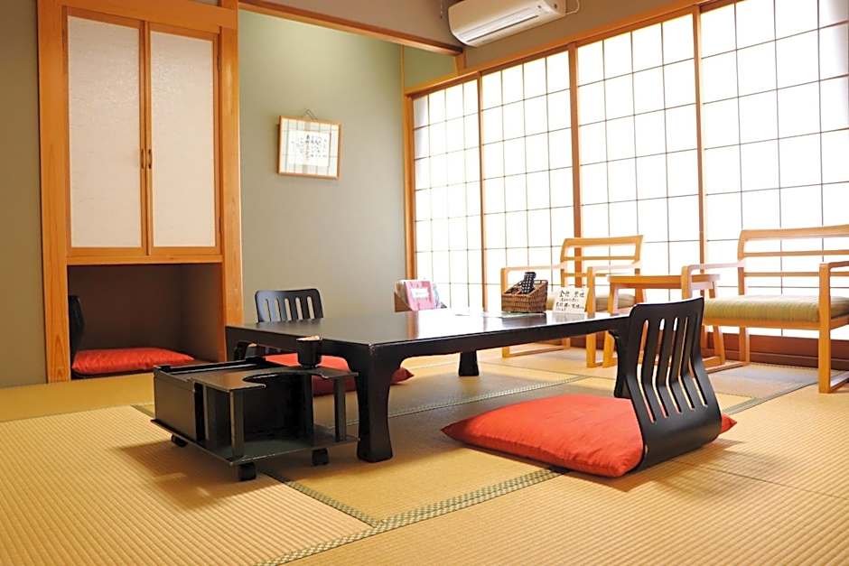 Providing free toiletries, this quadruple room includes a shared bathroom with a bidet and slippers. The air-conditioned quadruple room provides a flat-screen TV with satellite channels, tatami, a wardrobe and a safe deposit box. The unit offers 4 futons.
